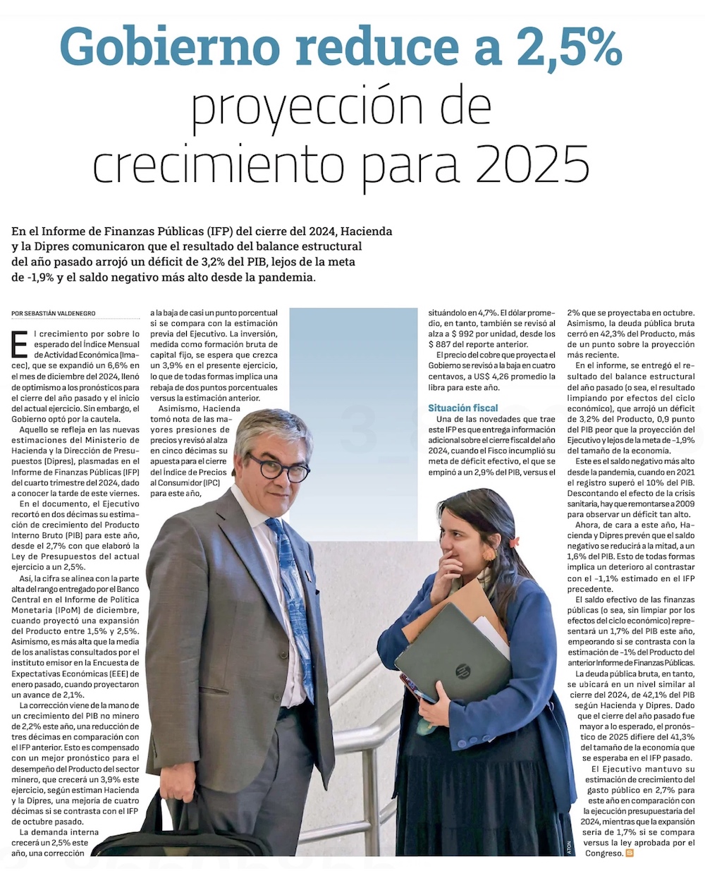Gobierno cierra 2024 con un grave deterioro de las cuentas fiscales y compromete acciones “correctivas” - (El Mercurio de Santiago)