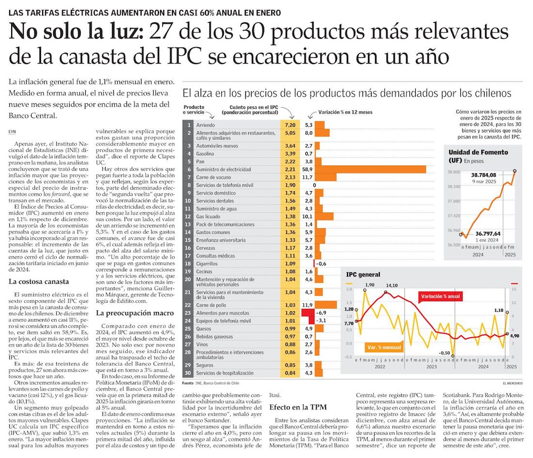 IPC de enero anota mayor alza mensual en casi dos años e inflación anual bordea de nuevo el 5% - (Pulso)