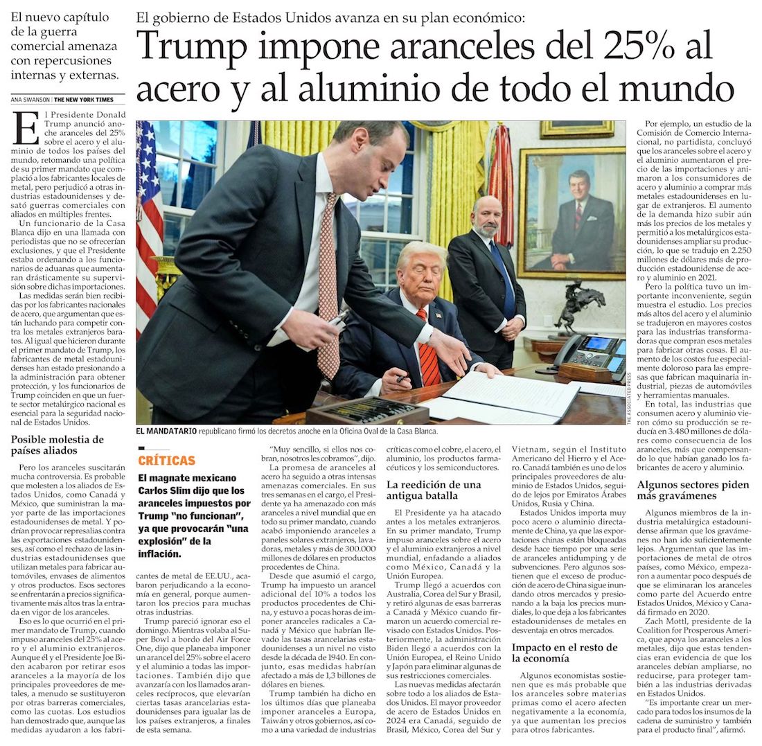 Trump oficializa aranceles al acero y Aluminio: Chile monitorea los efectos - (Diario Financiero)