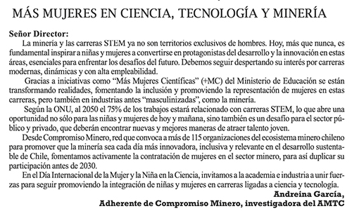 Más Mujeres en Ciencia, Tecnología y Minería - (Andes online)