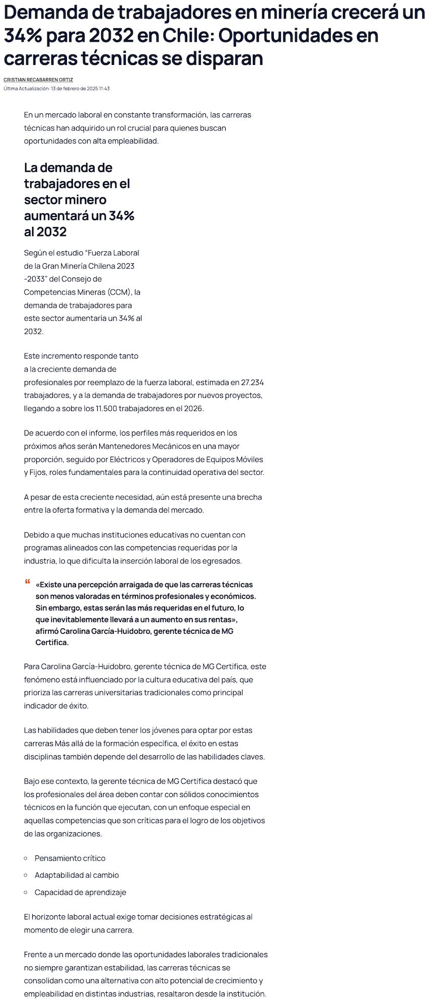 Detallan las carreras técnicas con alta empleabilidad vinculadas al sector minero - (mch.cl)