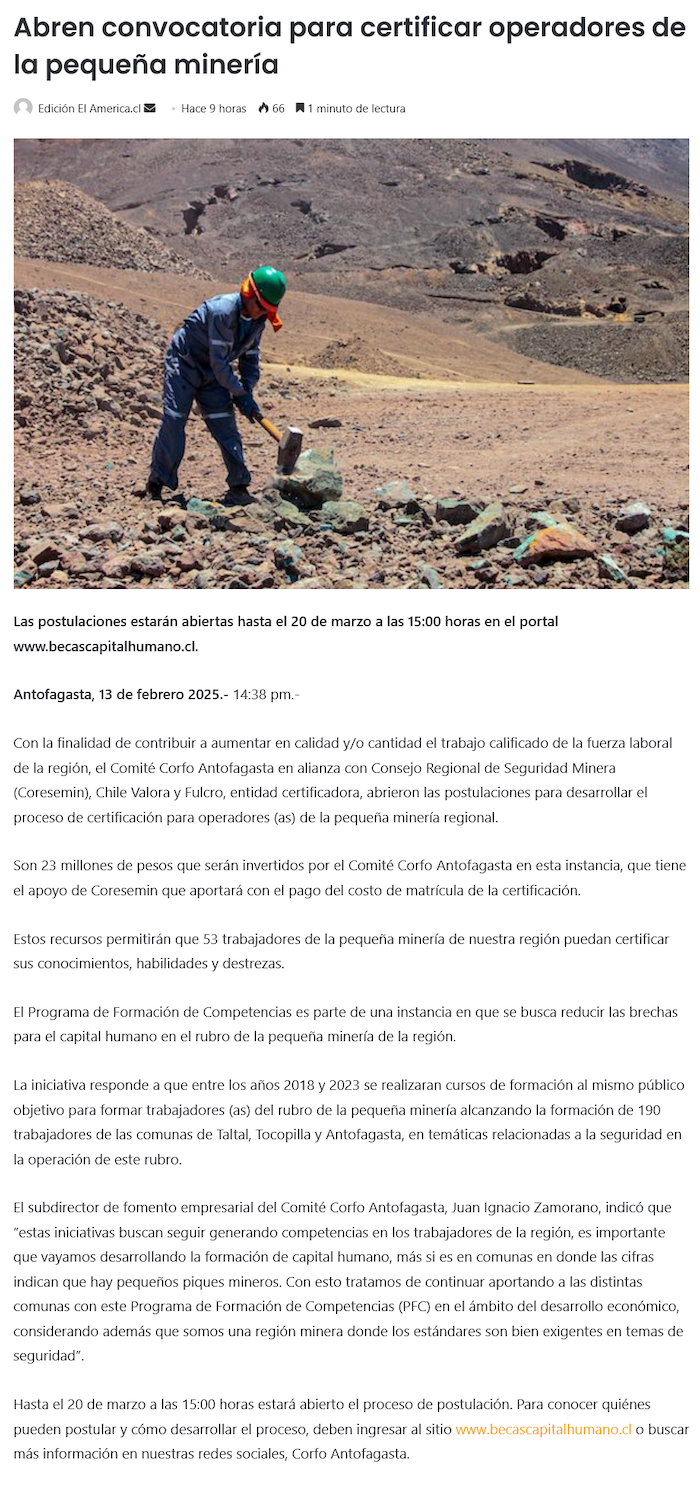 Llamado para certificar la pequeña minería - (La Estrella)