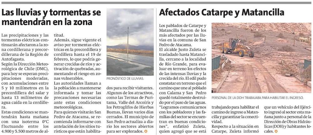 Alerta por aumento de caudales en los ríos tras lluvias estivales - (El Mercurio de Antofagasta)