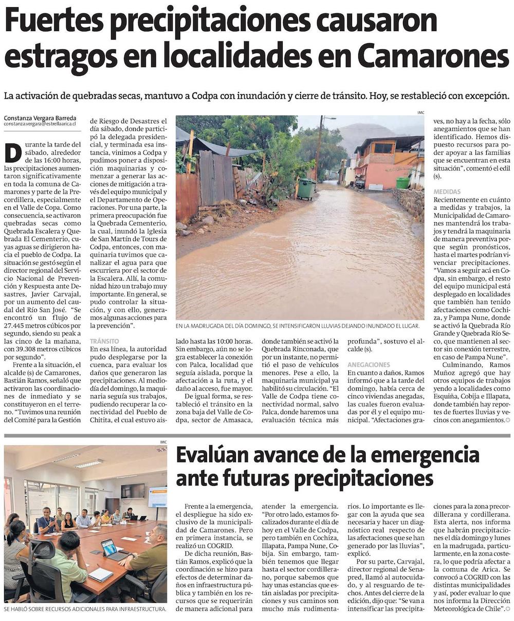 Lluvias provocaron cortes parciales de caminos en poblados del Tamarugal - (Estrella de Iquique)