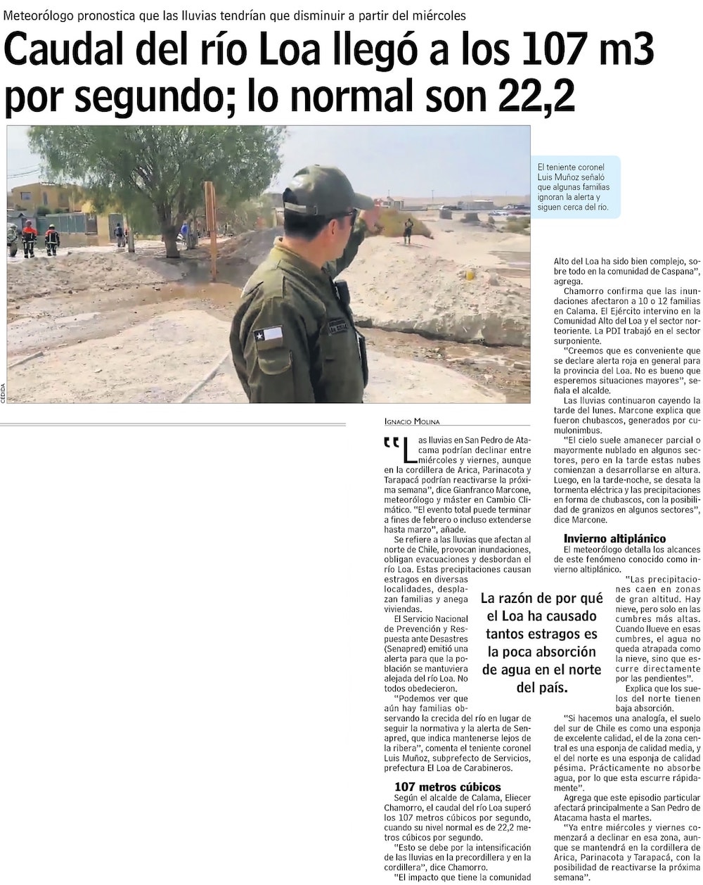 “Invierno altiplánico” concentra sus estragos en Calama tras crecida de río - (El Mercurio de Santiago)