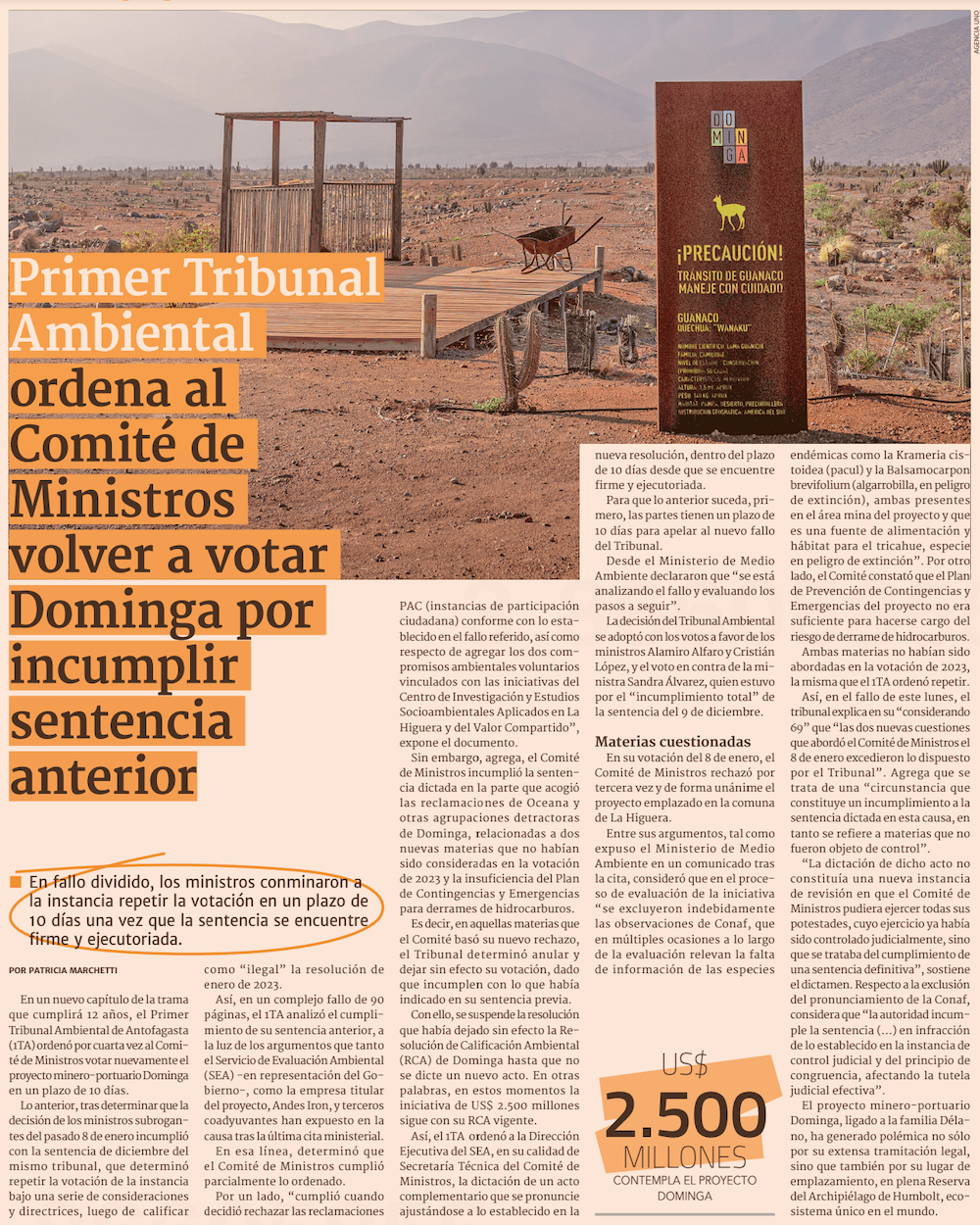 Tribunal Ambiental de Antofagasta ordena al gobierno cumplimiento "forzado" de fallo a favor de proyecto Dominga - (Pulso)