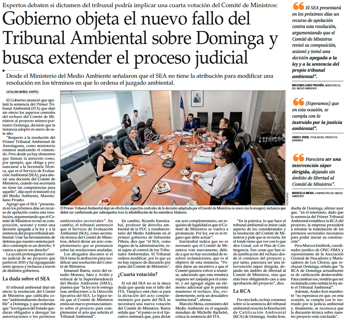 Gobierno se planta con su rechazo a Dominga: apelará a fallo del tribunal y dice que ejercerá derecho a defensa - (Diario Financiero)