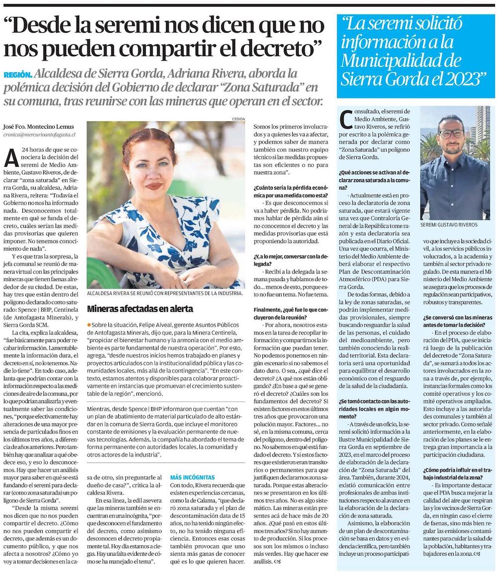 Alcaldesa de Sierra Gorda por declaración de zona saturada: "Exigimos que se nos informe sobre el fondo y forma de este acto" - (DF Online)