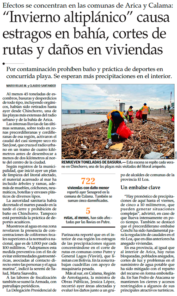 Por precipitaciones en el norte: más de 700 viviendas presentan daños tras desborde del río Loa en Calama - (La Tercera Online)