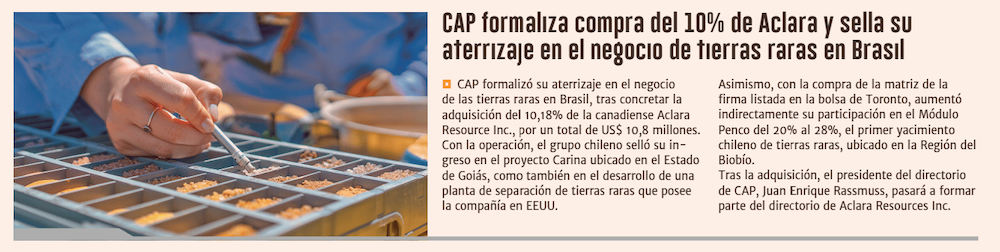 CAP ingresa a la propiedad de la matriz de Aclara Resources, y formaliza su llegada a Canadá y Brasil - (Pulso)