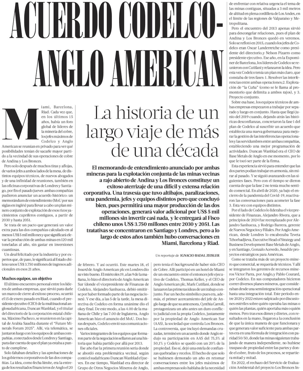Ganancias del acuerdo entre Anglo American y Codelco - (La Tercera)