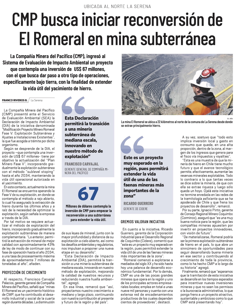 Romeral avanza hacia la minería subterránea: explotación será hasta 2034 - (redimin)