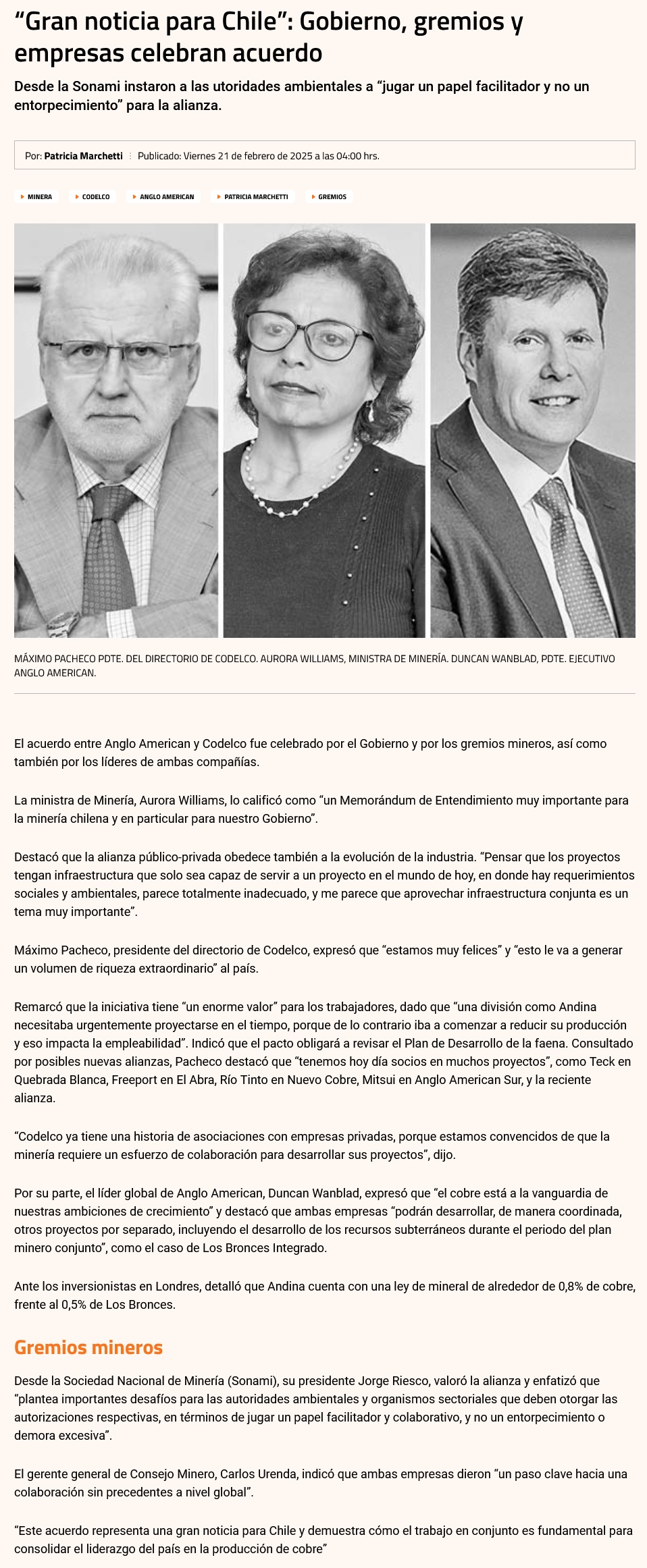 21 años y 120 mil toneladas anuales: Codelco-Anglo American firman acuerdo para explotar juntos Andina y Los Bronces - (codexverde.cl)
