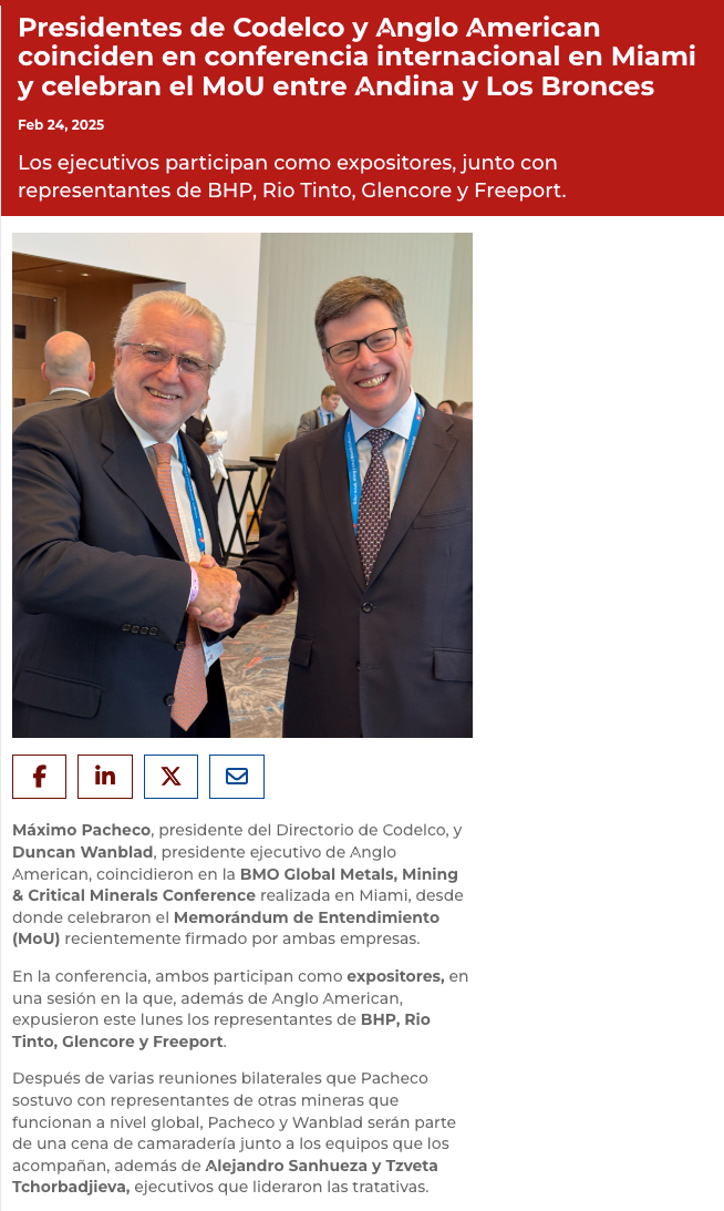 Por una minería sostenible: Alianza de Codelco y Anglo American mantiene compromisos socioambientales vigentes - (eldesconcierto)
