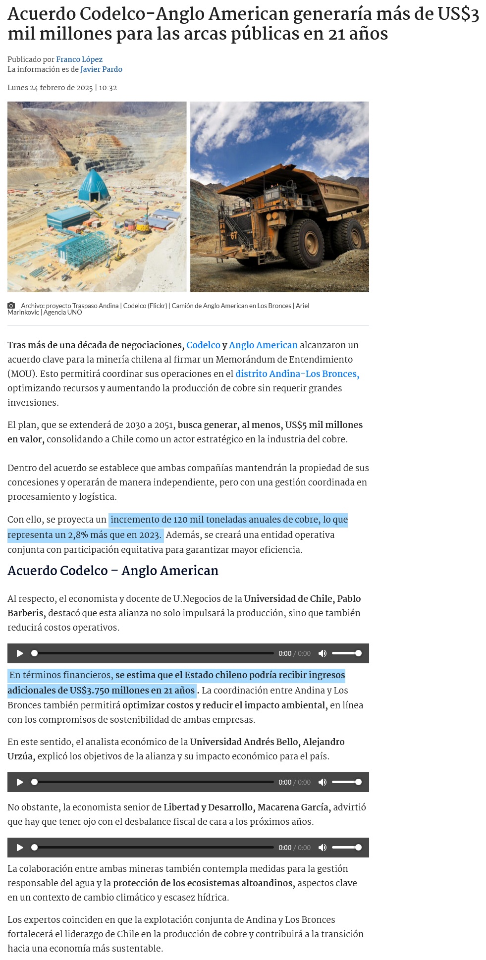 Por una minería sostenible: Alianza de Codelco y Anglo American mantiene compromisos socioambientales vigentes - (eldesconcierto)