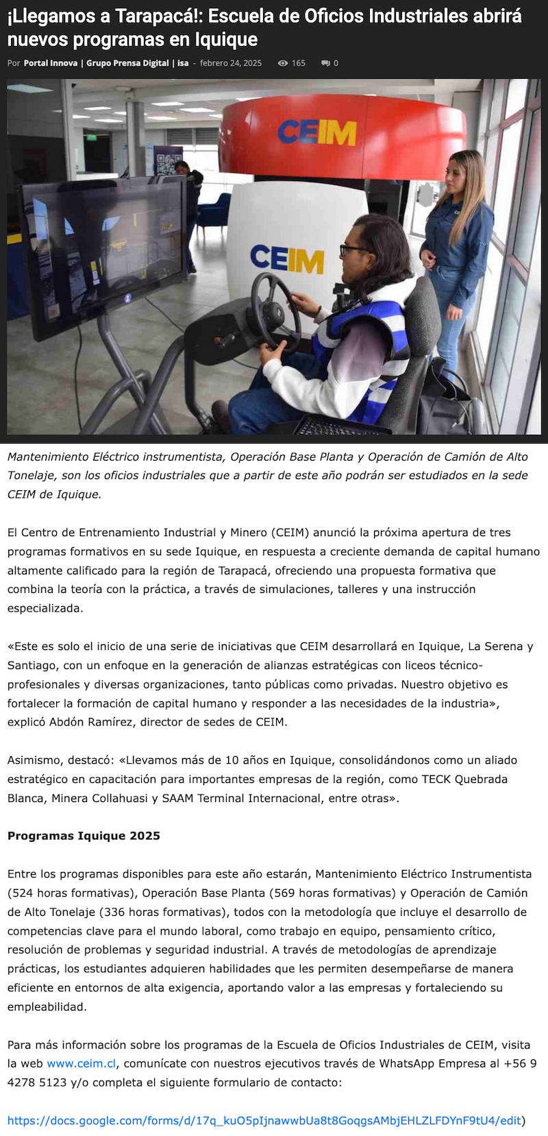 Escuela de Oficios Industriales abrirá nuevos programas en Iquique - (mch.cl)
