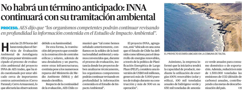 Pese a intensa presión científica megaproyecto INNA sigue adelante en su tramitación ambiental - (Pulso)