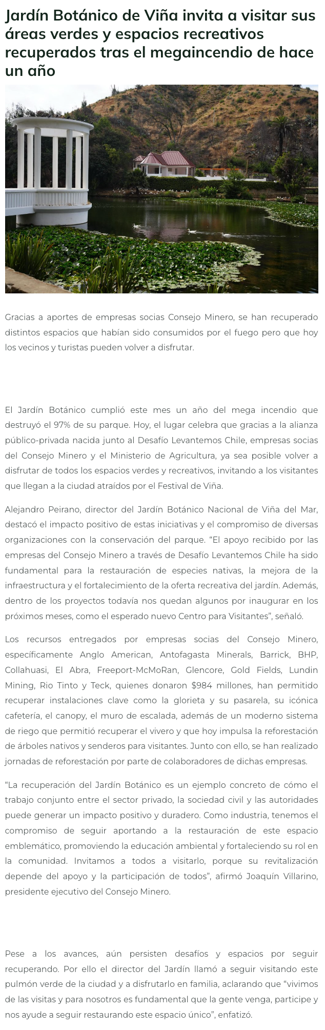 Jardín Botánico de Viña invita a visitar sus espacios recreativos recuperados tras el megaincendio de hace un año - (portalminero)