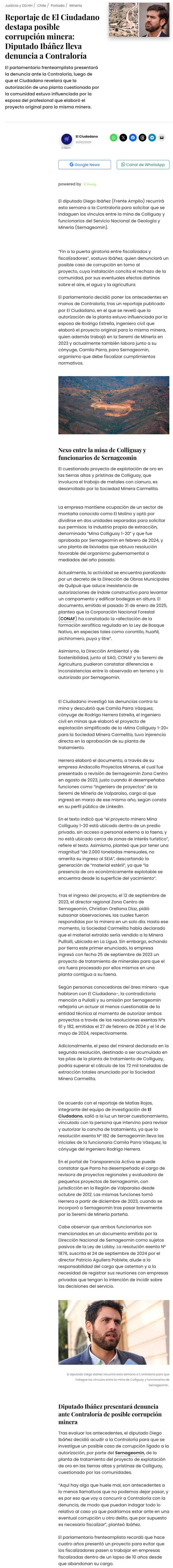 Piden investigar autorización de proyecto minero en Colliguay - (El Mercurio de Valparaíso)