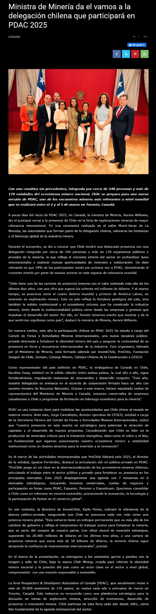 Ministra de Minería da el vamos a la delegación chilena que participará en PDAC 2025 - (americaminera.com)