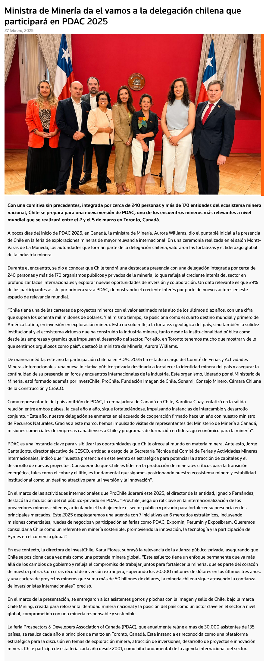 Ministra de Minería da el vamos a la delegación chilena que participará en PDAC 2025 - (chillanonline.cl)