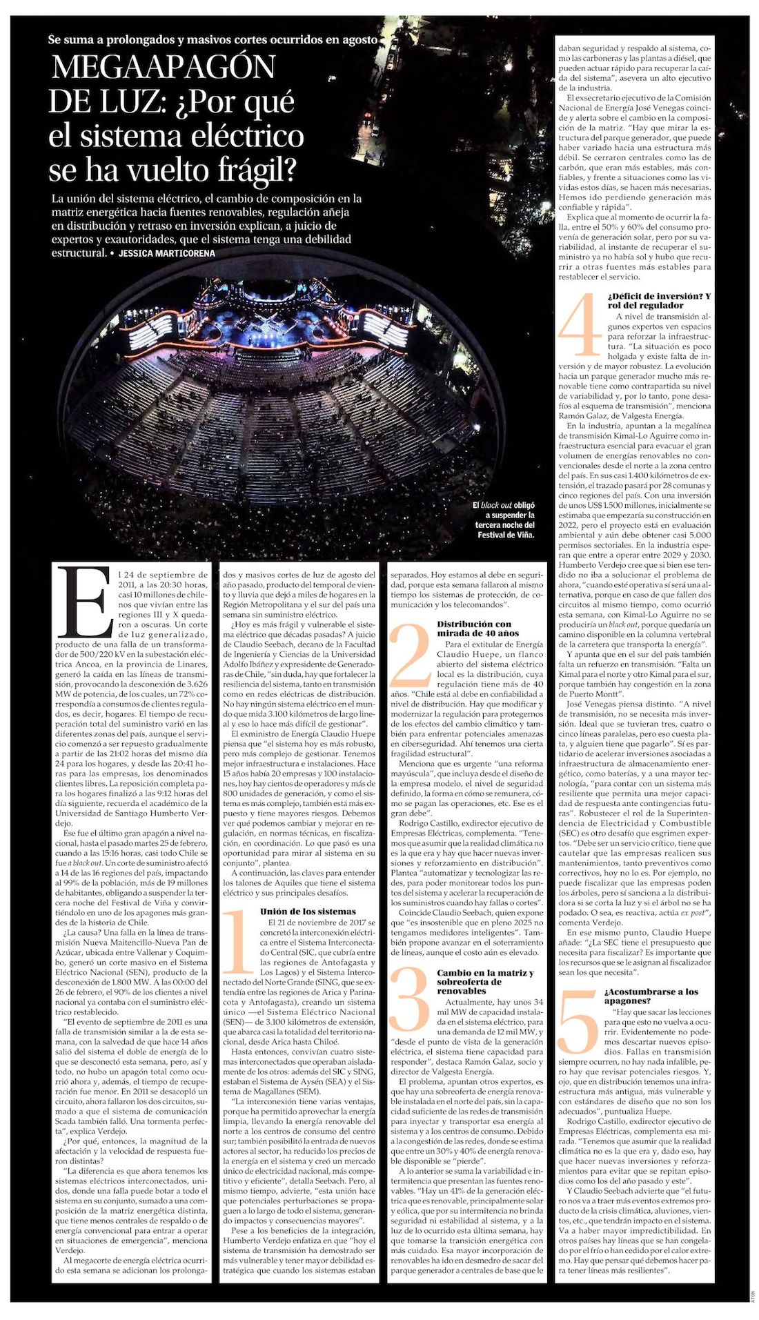 El déficit de infraestructura en transmisión eléctrica que reveló el inédito apagón - (El Mercurio de Santiago)