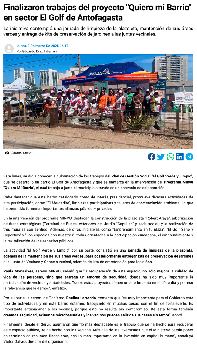 Sector El Golf de Antofagasta renace gracias al proyecto Quiero mi Barrio - (antofagasta.cl)