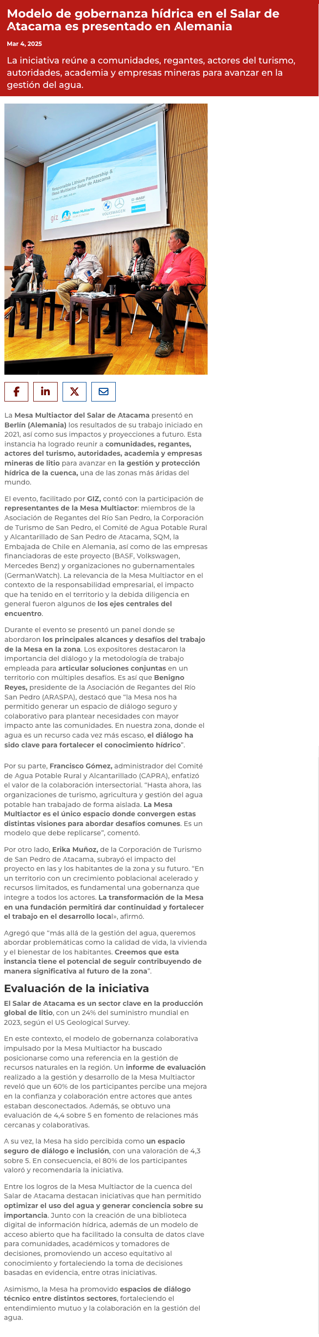 Mesa Multiactor del Salar de Atacama: Modelo pionero de gobernanza hídrica en el Salar de Atacama es presentado en Alemania - (portalinnova.cl)