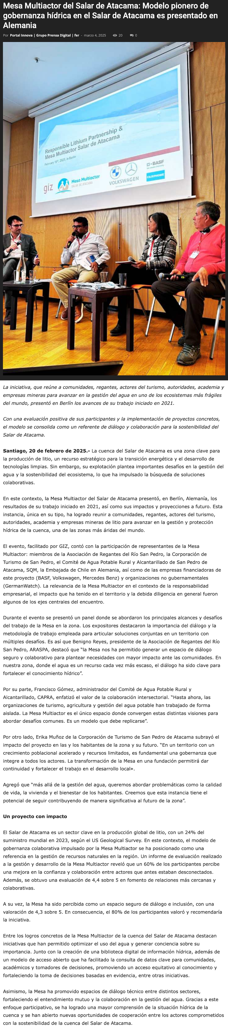 Modelo de gobernanza hídrica en el Salar de Atacama es presentado en Alemania - (mch.cl)