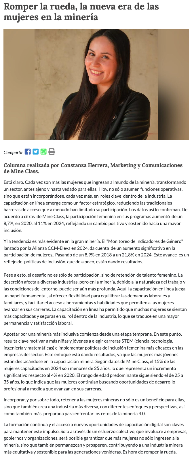 Romper la rueda, la nueva era de las mujeres en la minería - (portalinnova.cl)