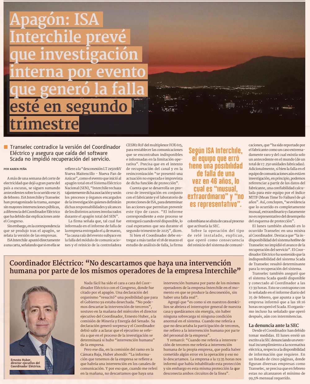 ISA Interchile califica de "inusual y extraordinario" origen de falla en su línea y rechaza "asociación" con el apagón - (Pulso)