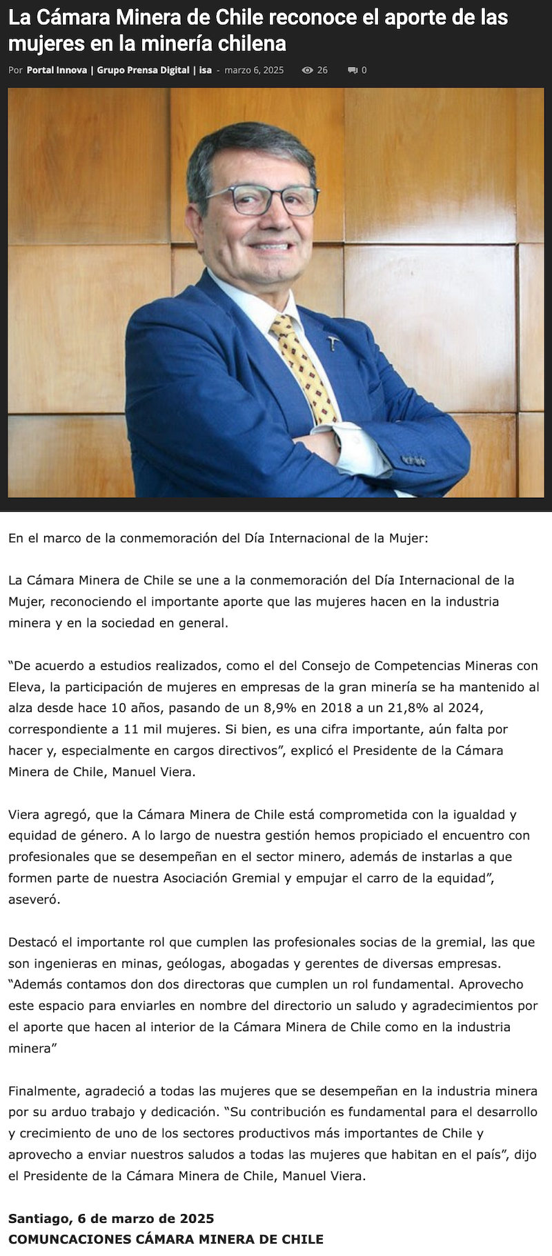 Cámara Minera de Chile reconoce el aporte de las mujeres en la minería de Chile - (portalminero)