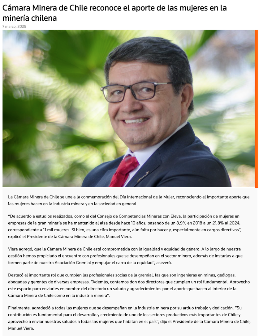 La Cámara Minera de Chile reconoce el aporte de las mujeres en la minería chilena - (tierramarillano.cl)