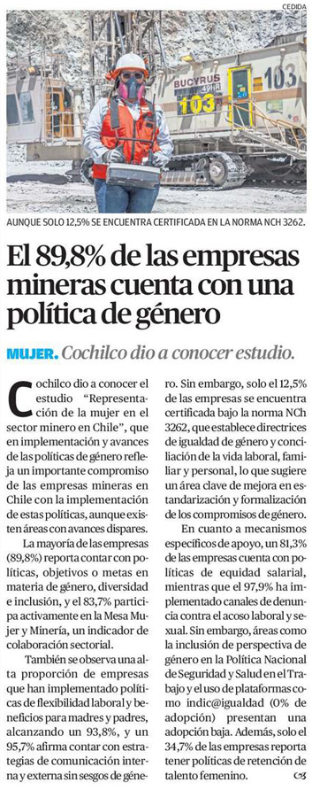 Estudio de Cochilco proporciona diagnóstico sobre presencia y perfil de las mujeres en la Gran y Mediana Minería - (mch.cl)