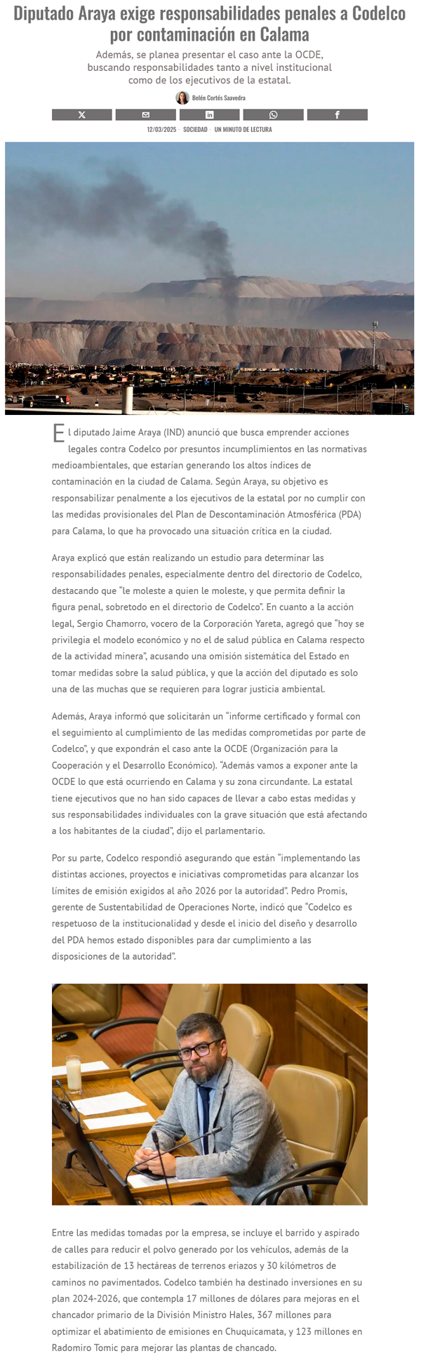 No descartan demandar al Estado por la falta de implementación del PDA Calama - (El Mercurio de Calama)