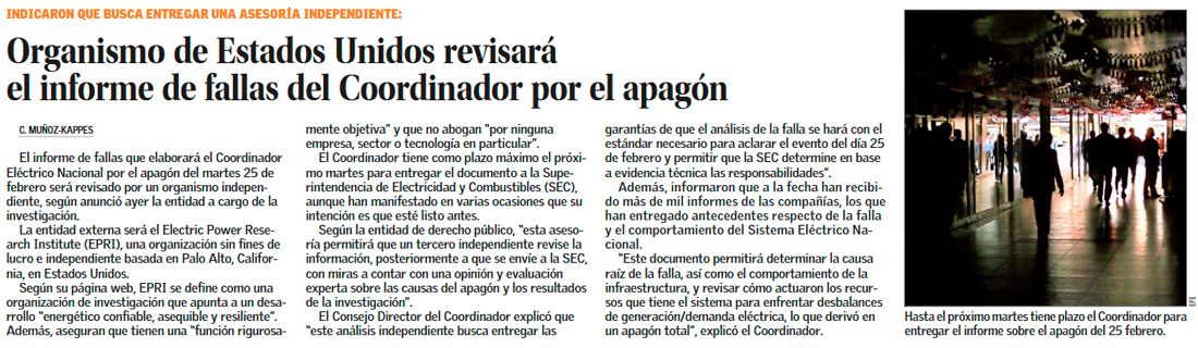 Instituto de EE.UU. evaluará resultados del estudio de análisis de falla del apagón - (Pulso)