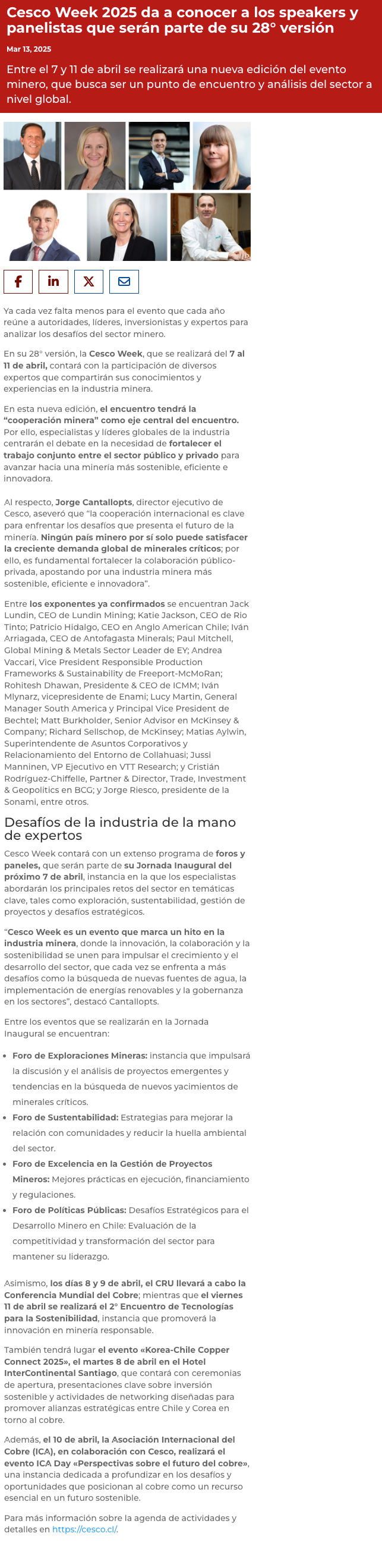 CESCO Week 2025 anuncia su agenda de speakers y panelistas que serán parte de su 28° versión - (portalinnova.cl)