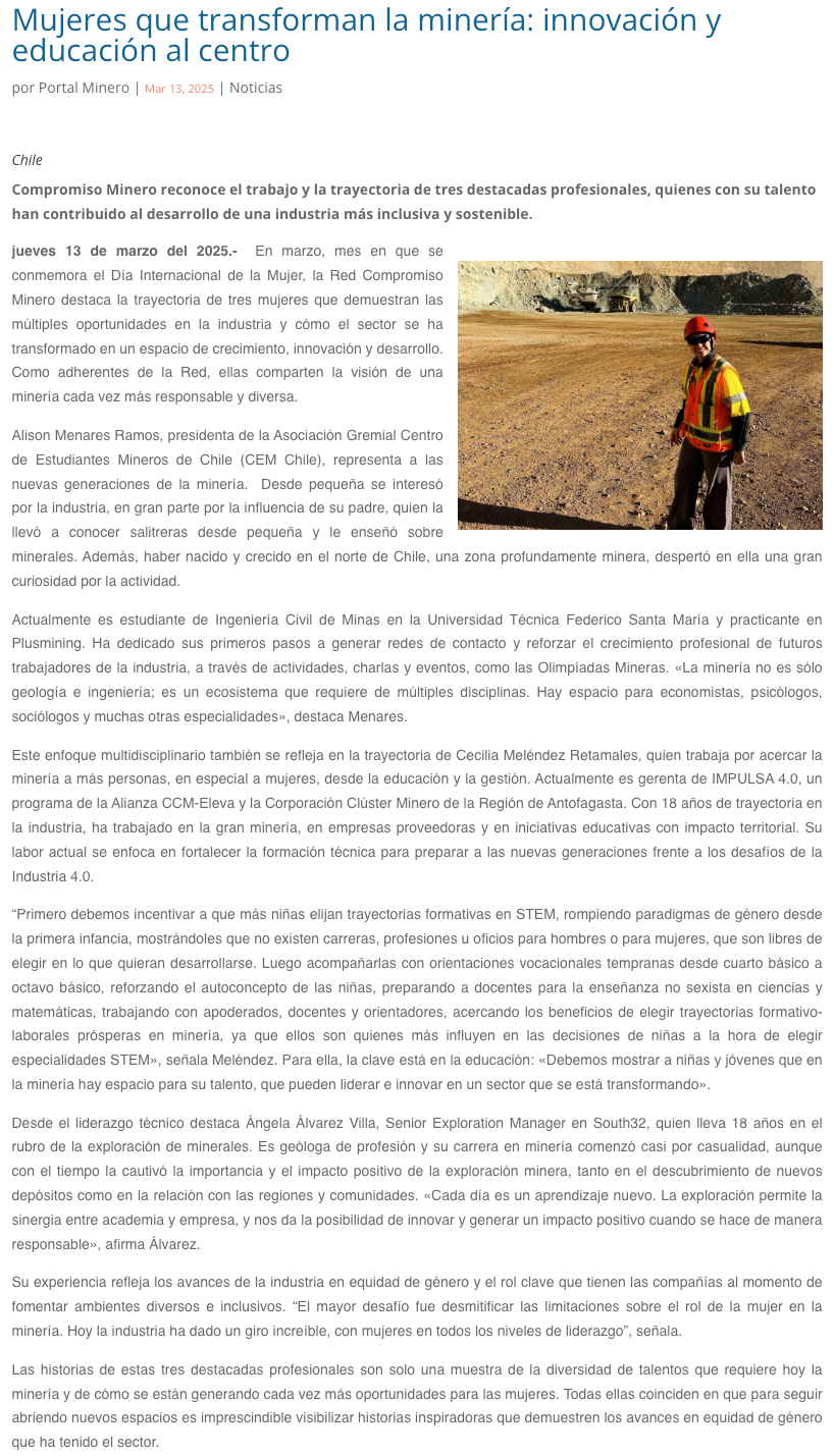 Mujeres que transforman la minería: innovación y educación al centro - (portalinnova.cl)