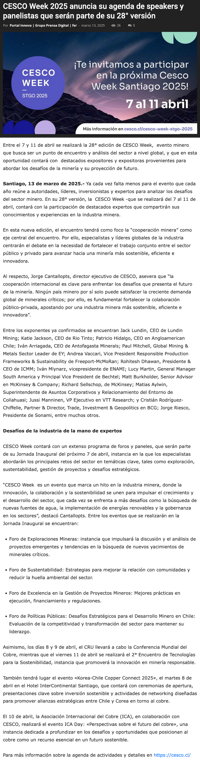 Cesco Week 2025 da a conocer a los speakers y panelistas que serán parte de su 28° versión - (mch.cl)