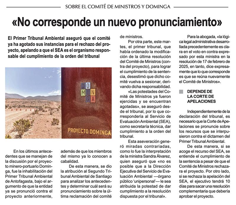 Dominga: Tribunal Ambiental descarta nueva sesión del Comité de Ministros - (El Día)