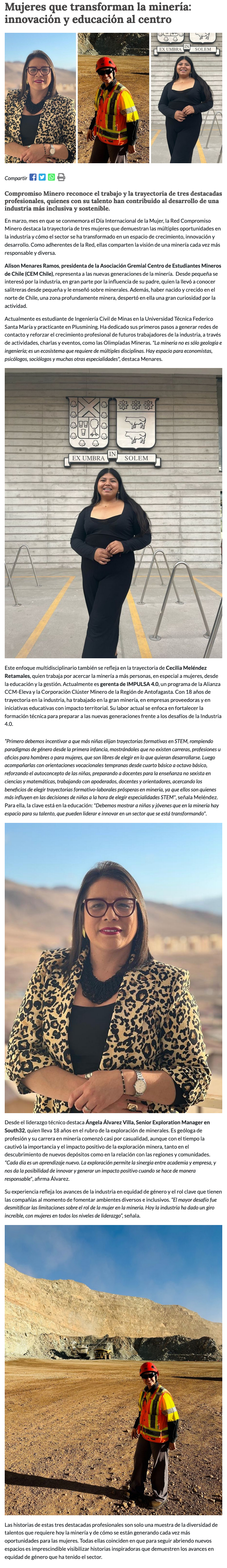 Mujeres que transforman la minería: innovación y educación al centro - (portalinnova.cl)