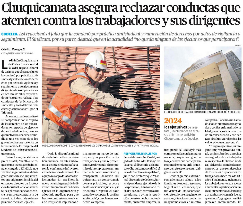 Chuquicamata rechaza conductas que atentan contra los trabajadores - (La Estrella)