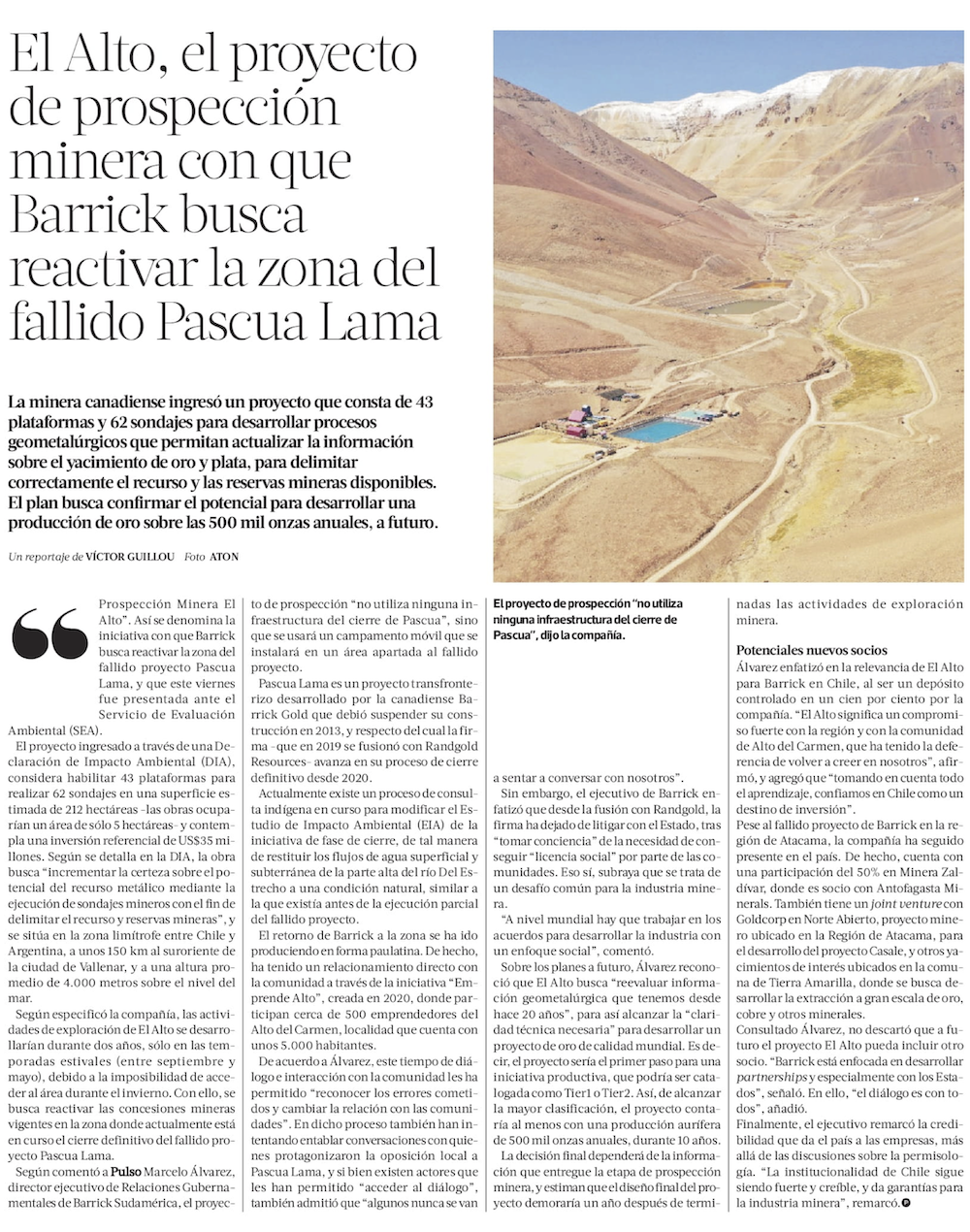 Barrick ingresó al SEIA Declaración de Impacto Ambiental de proyecto El Alto - (El Diario de Atacama)