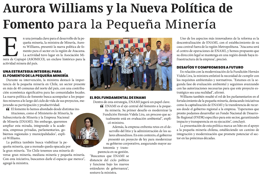 Con proyecto de ley buscan que casa matriz de Enami esté en zona minera - (El Diario de Atacama)