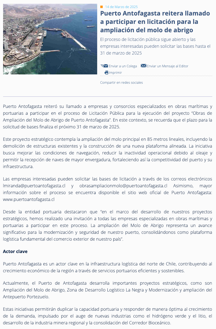 Llaman a participar en licitación para ampliación del molo del puerto - (La Estrella)