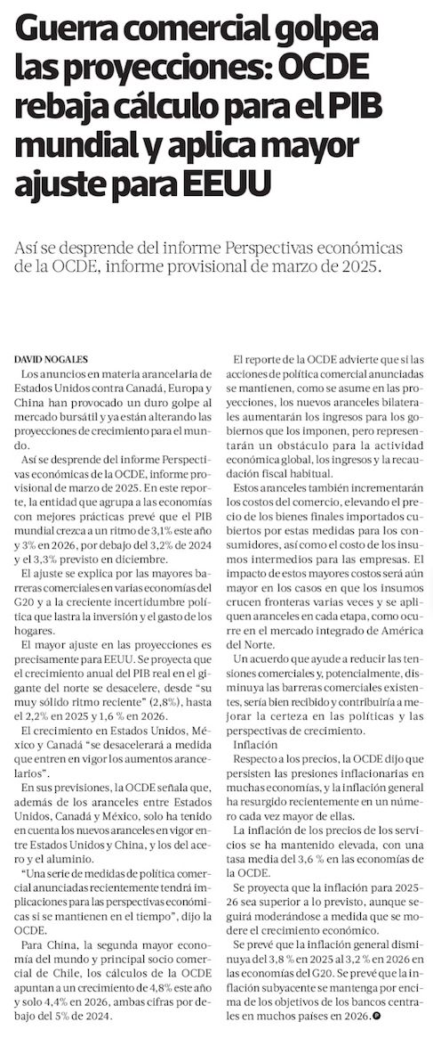 OCDE reduce la proyección para la economía mundial por la guerra comercial y alerta sobre alza de precios - (Diario Financiero)