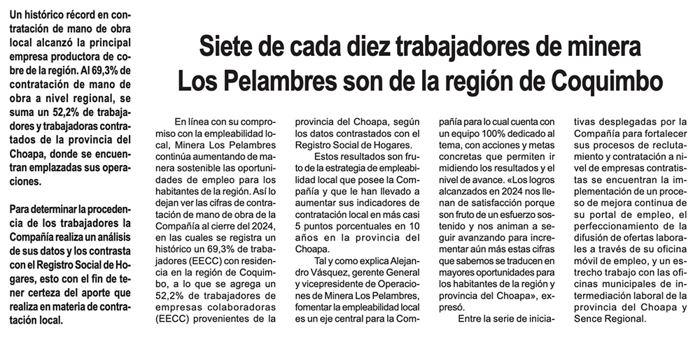 Fuerza laboral femenina continúa al alza en Minera Los Pelambres - (mch.cl)