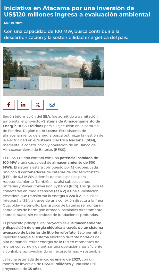 SEA admite a trámite proyecto de generación híbrida en Taltal por US$750 millones de firma de capitales portugueses - (Pulso)