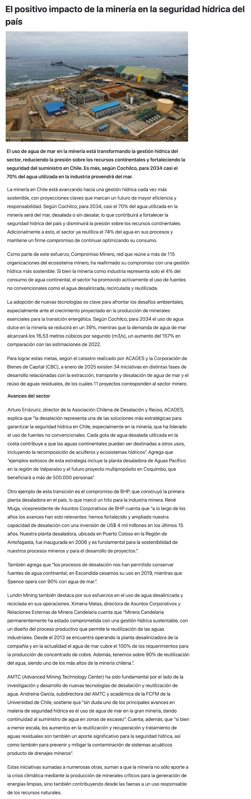 El positivo impacto de la minería en la seguridad hídrica del país - (radioantara.cl)