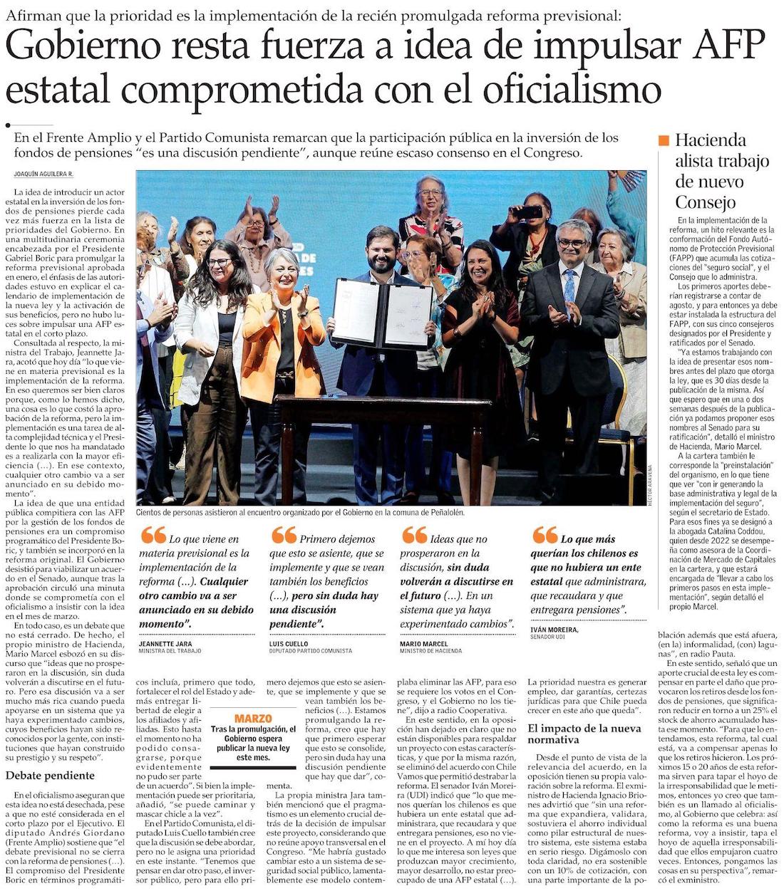 La Moneda promulga reforma de pensiones en medio de días marcados por definición presidencial de la ministra Jara - (Diario Financiero)